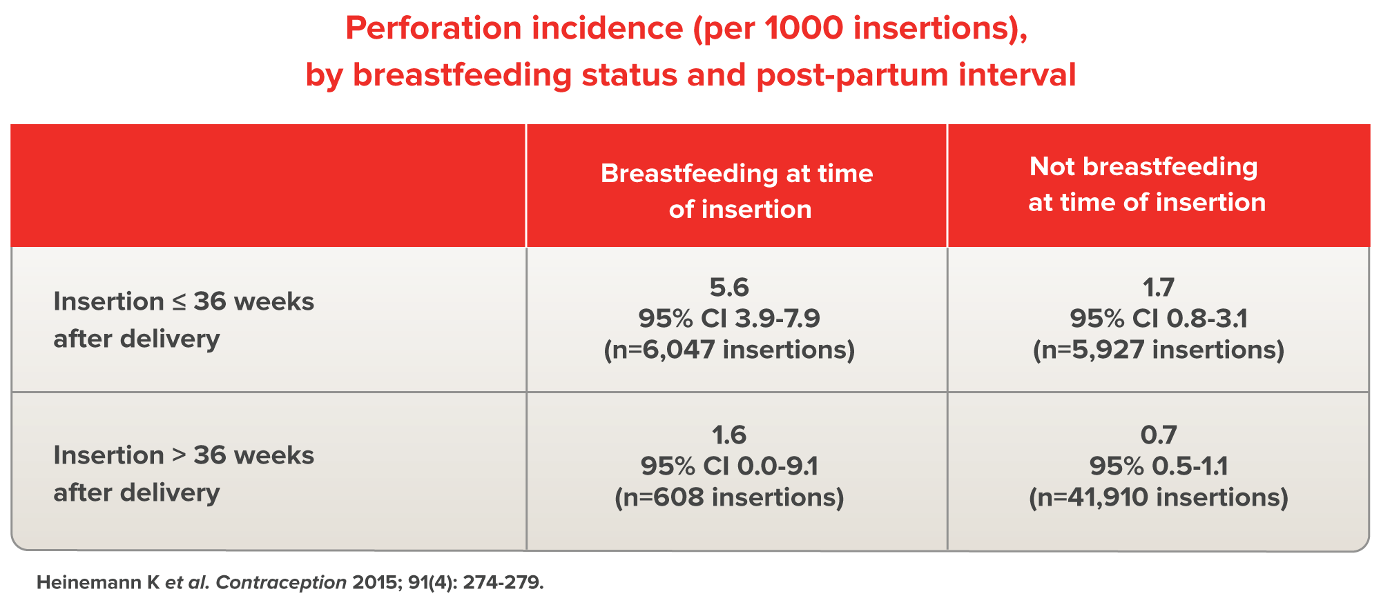 Heinemann K et al. Risk of uterine perforation with
