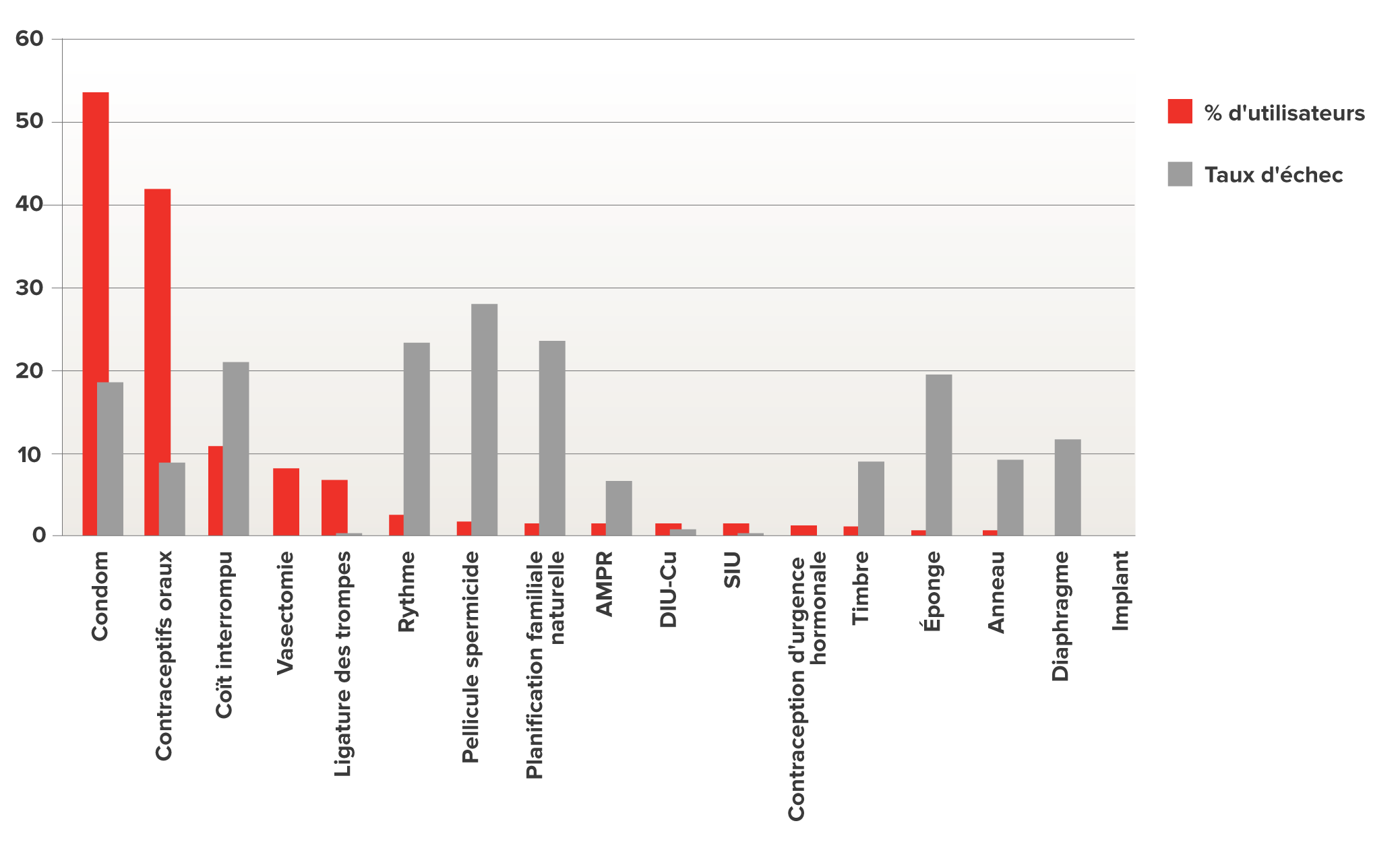 L’utilisation des méthodes contraceptives au Canada n’est pas liée à leur efficacité, ce qui démontre la nécessité de mieux conseiller les femmes sur l’efficacité de ces méthodes.