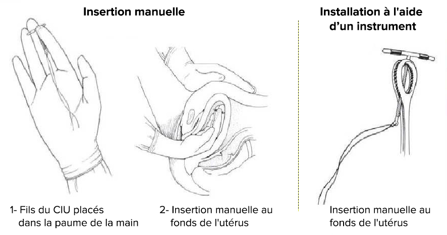 Si le CIU est visible dans le canal endocervical ou le vagin, il doit être retiré et ne pas être inséré à nouveau. Toutefois, au moment du retrait, on peut tout de suite insérer un nouveau dispositif.