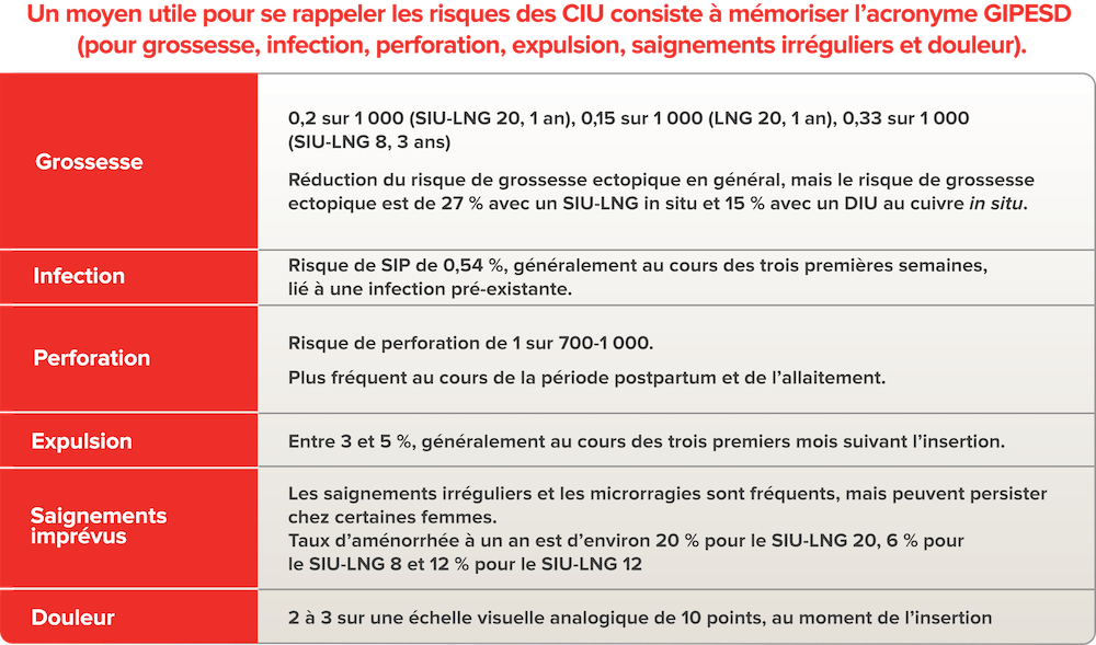Le risque de d’atteinte du syndrome inflammatoire pelvien (SIP)