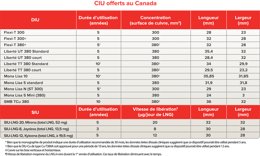 Directive clinique de la SOGC, Consensus canadien sur la contraception (Partie 3) : Chapitre 7 – Contraception intra-utérine